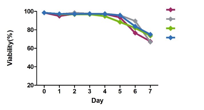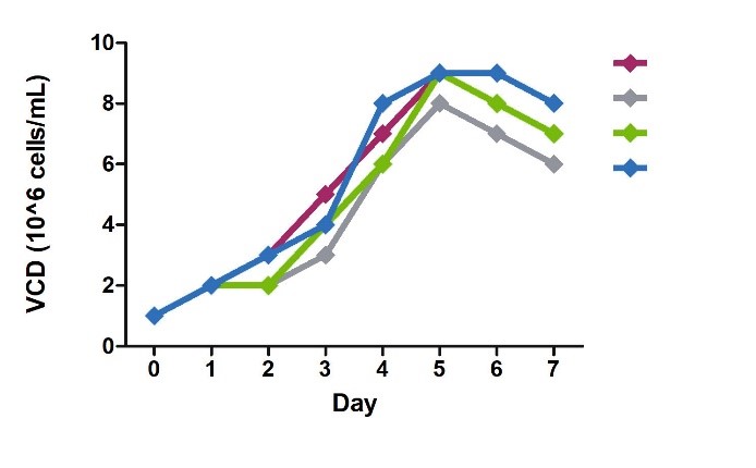 The growth of different HEK293 cells in Wayne293™. Batch, 125mL shake flask, working volume 30mL, ф25mm, 125rpm, humidity 75%, 5% CO2, 37°C for 7 days.