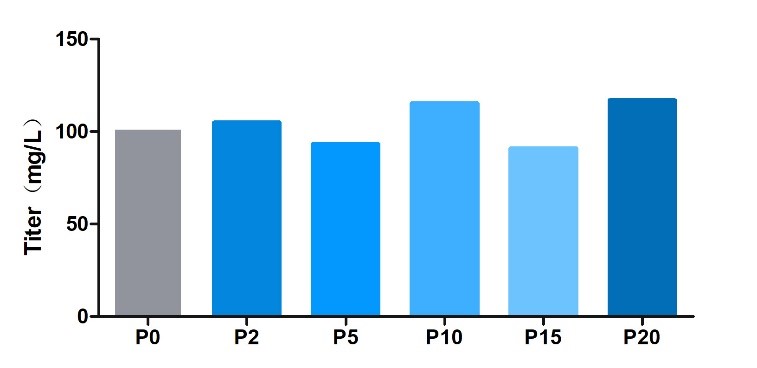 125mL shake flask, working volume 30mL, ф25mm, 125rpm, humidity 75%, 5%CO237℃ culture; passage the next day, 20 passages in total, cryopreserved every 5 generations;